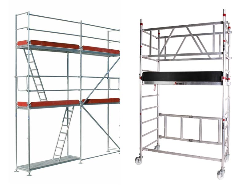 Andaime mais comum e usado em obras de construção civil e fachadas de prédios. Adequado a obras de complexidade de reduzida, para trabalhos de pintura, limpeza e outros outros serviços de construção em fachadas sem recortes técnicos demasiado exigentes.